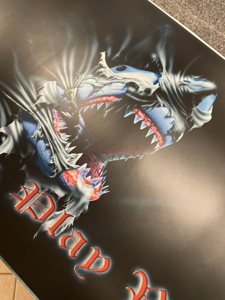 Ein Seiten-Dekor soll den Buggy individuell gestalten. Was würde besser zum „BLACKSHARK“ passen als das Hai-Motiv, das schon meinem 1300er Ness seinen coolen Look verliehen hat?Das Design hatte ich glücklicherweise noch als Datei gespeichert und konnte es bei derselben Druckerei erneut anfertigen lassen! Diesmal mit einer hochwertigeren, Folie. Diese wirkt deutlich robuster und spürbar dicker…