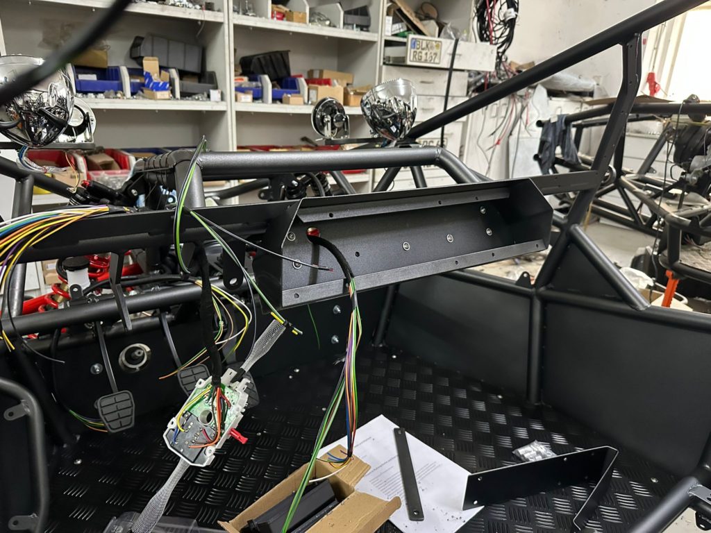 Die Elektrik muss nun angeschlossen werden. Der Kabelbaum ist bereits im Fahrzeug verlegt worden und wird nun nach und nach angeschlossen.