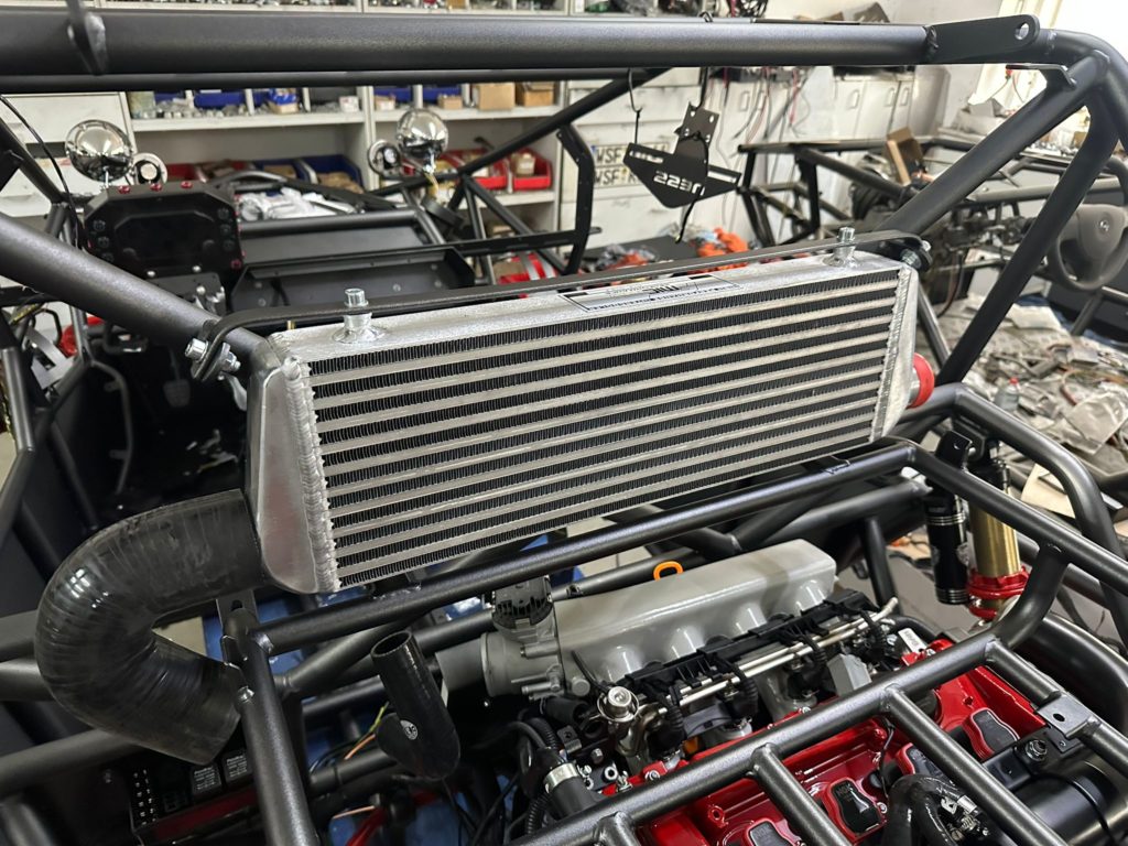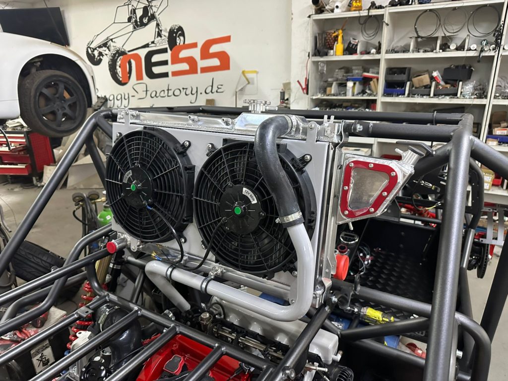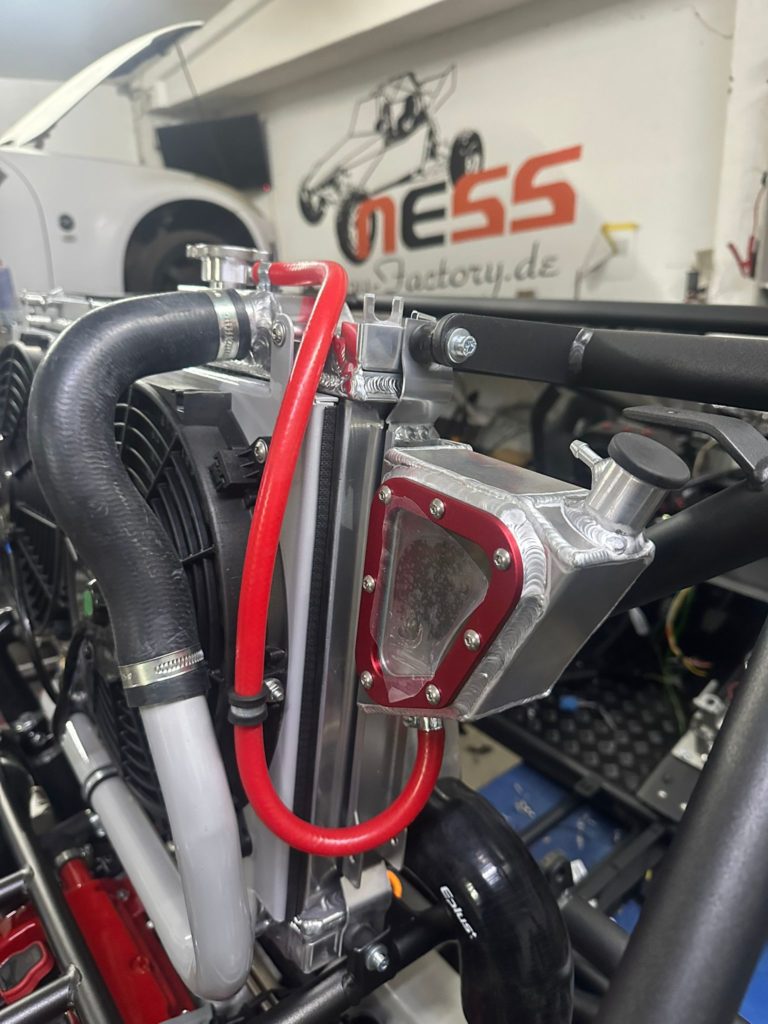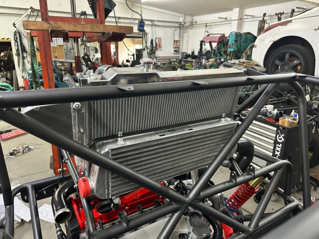 Der nächste Schhritt, der Kühler für das Kühlwasser und der Ladeluftkühler werden positioniert und angebaut, alle Zuleitungen inklusive Schlauchschellen werden verlegt.