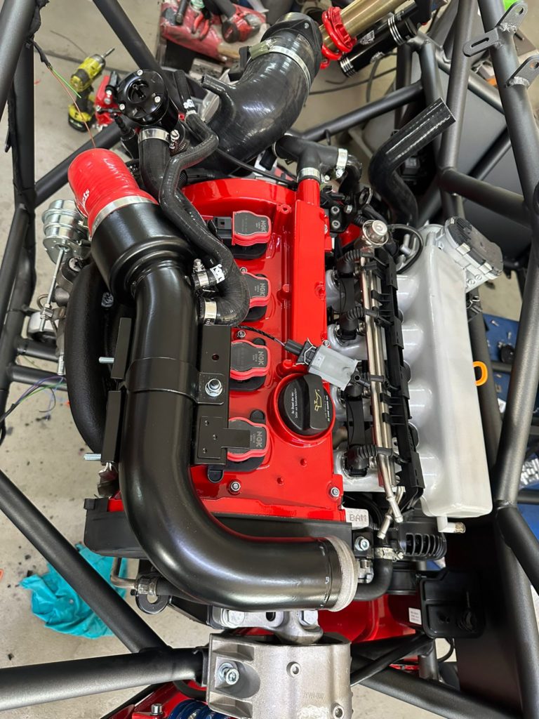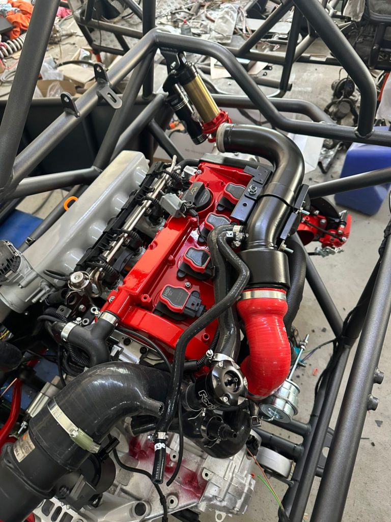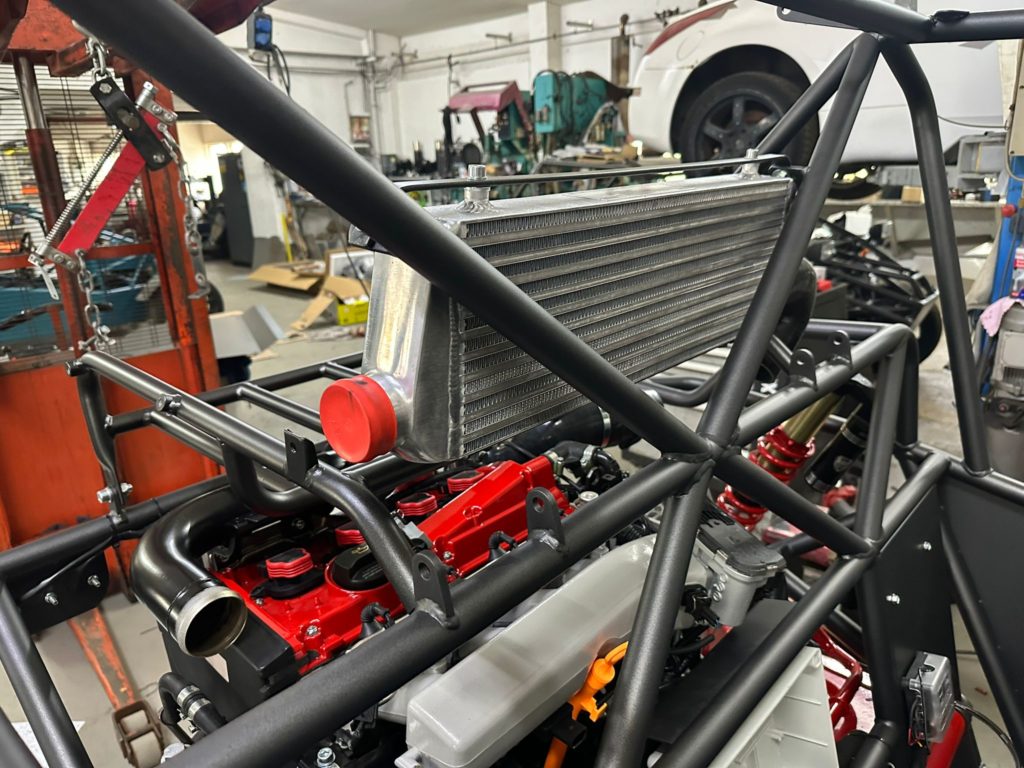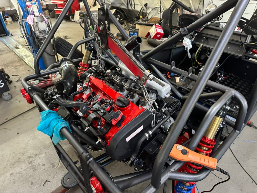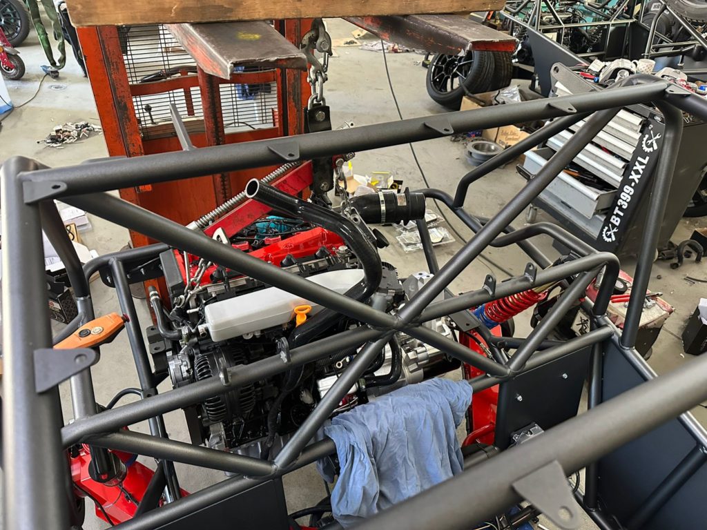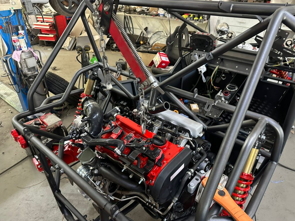 Es ist der lang ersehnte Moment: Das Triebwerk wird in den Rahmen eingebaut – ab jetzt ist es ein Buggy, ein „handmade“ Ness-Buggy 1.8T.