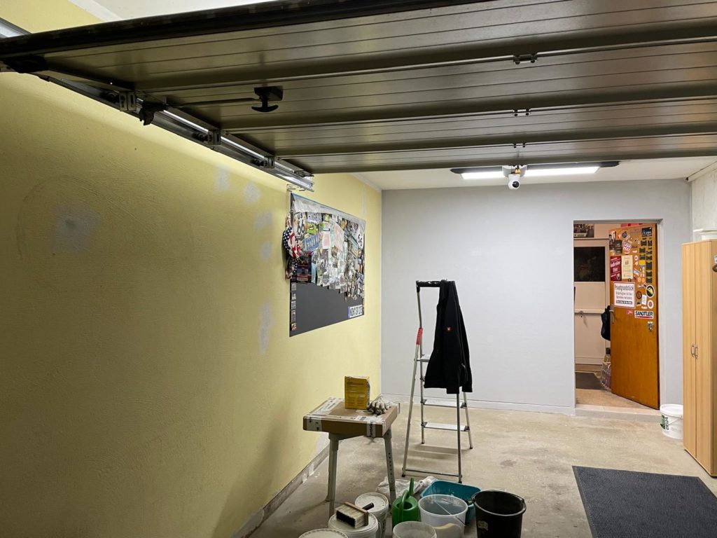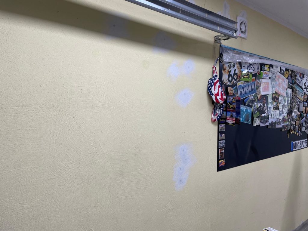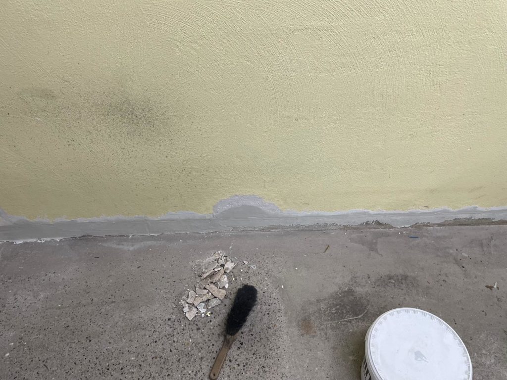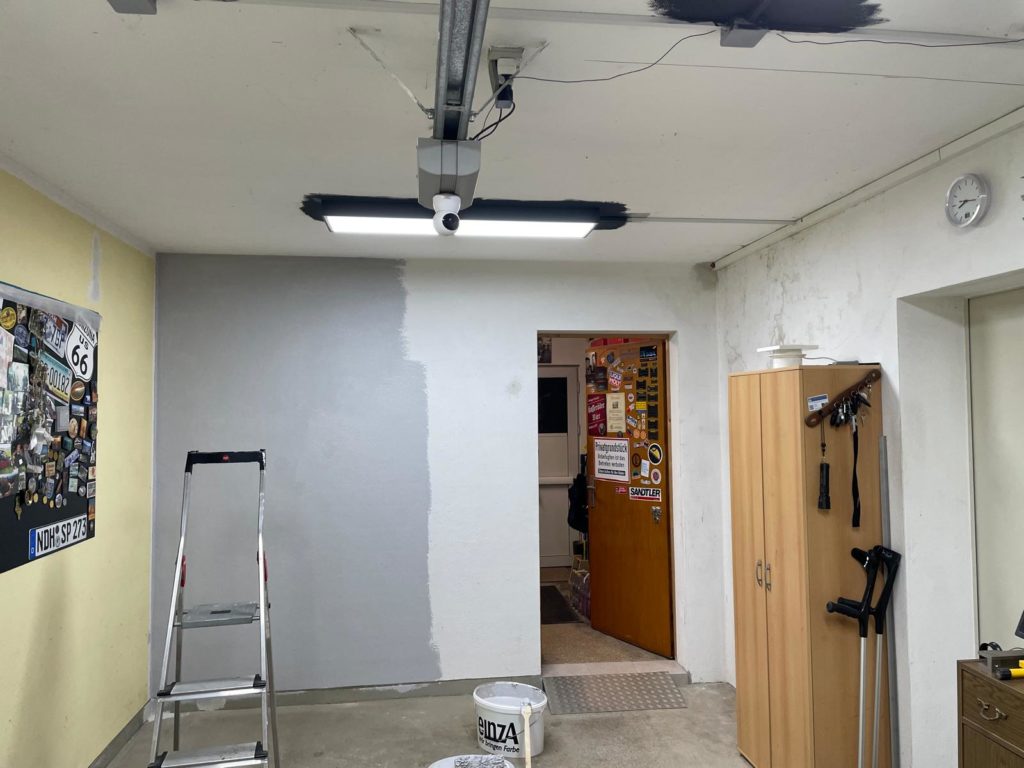 Die Löcher der Dübel werden alle zu gespachtelt und mit einem Pinsel verstrichen.