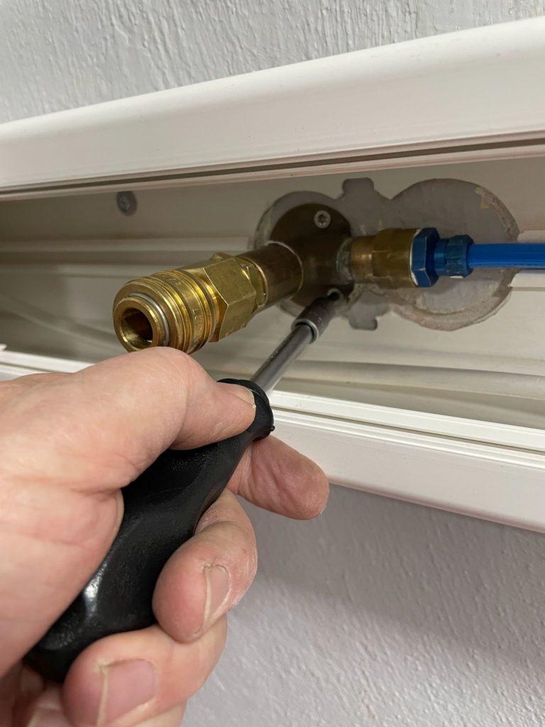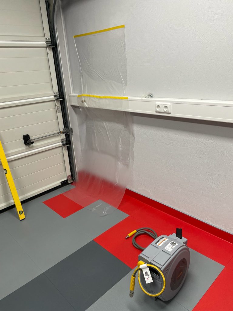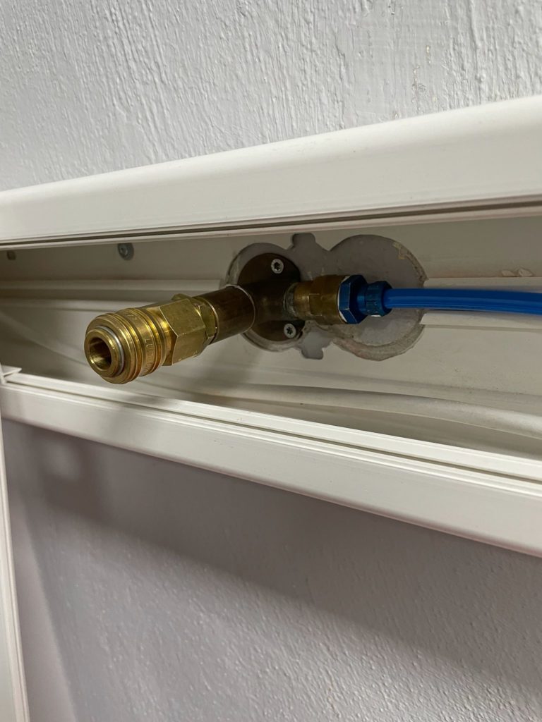 Heute die Druckluftleitung eingezogen und den Anschluss für die Aufrollbox vom Luftschlauch angebaut.