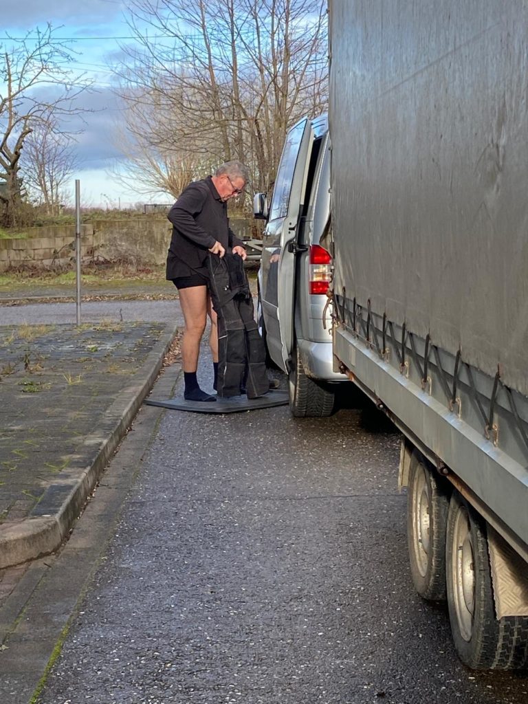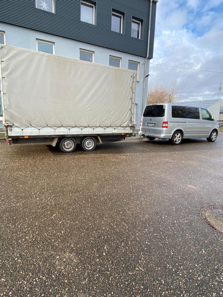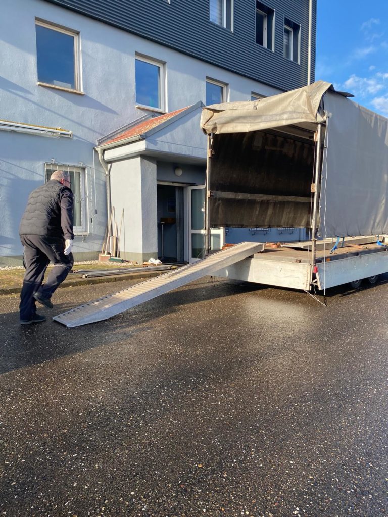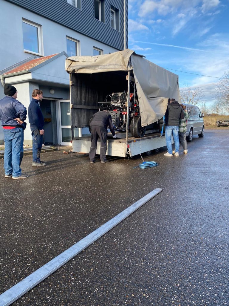Heute Montag den 08.12.2025 sind wir gegen 9:00 Uhr gestartet und Richtung Weißenfels zu Mirko Busch gefahren. Die Fahrt verlief ruhig trotz des ungewohnt großen Planenhänger. Ca. 11:00 Uhr waren wir am Zielort wo wir schon erwartet wurden. Kurze Lagebesprechung und es ging an die Verladung.