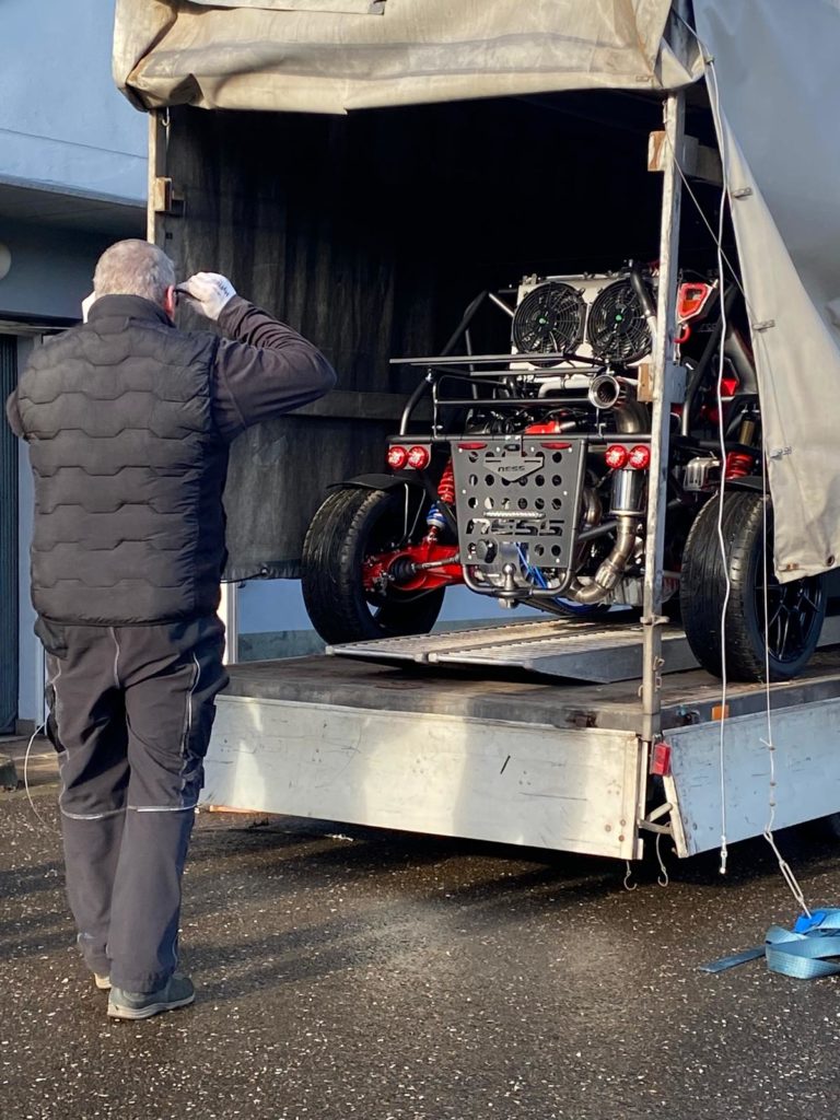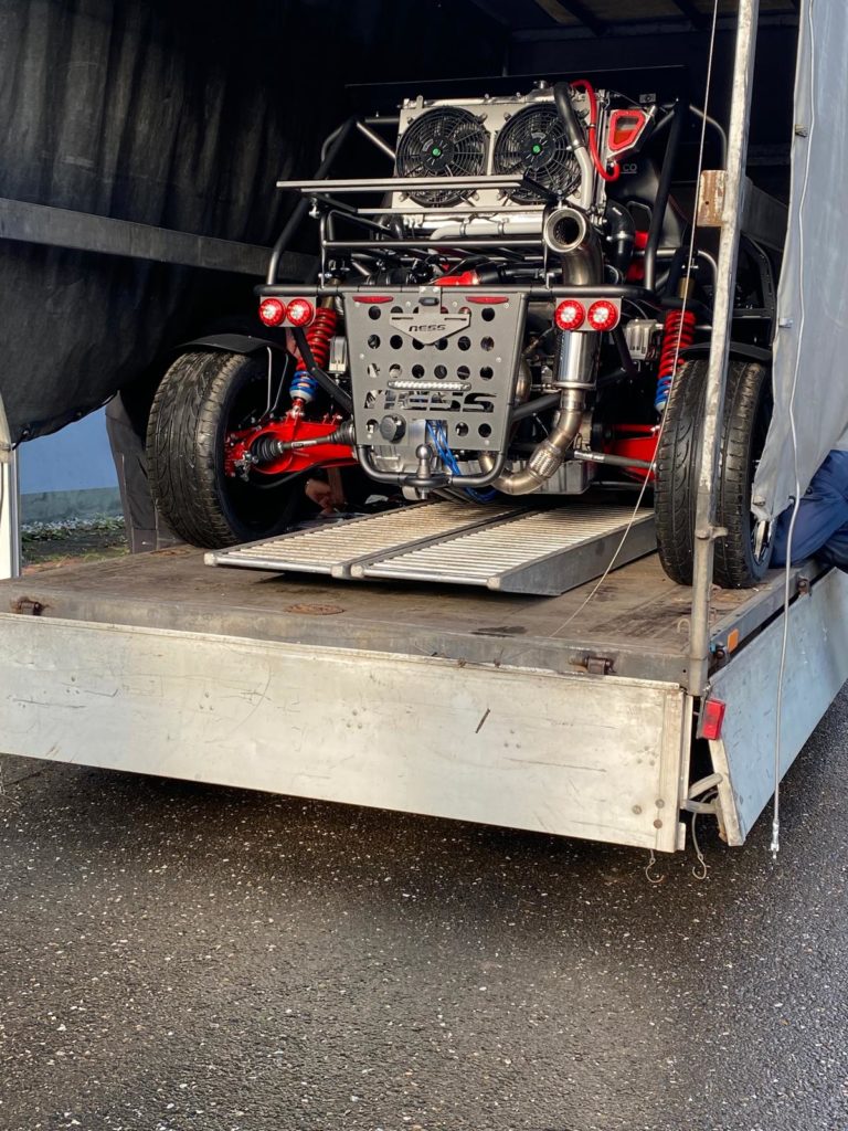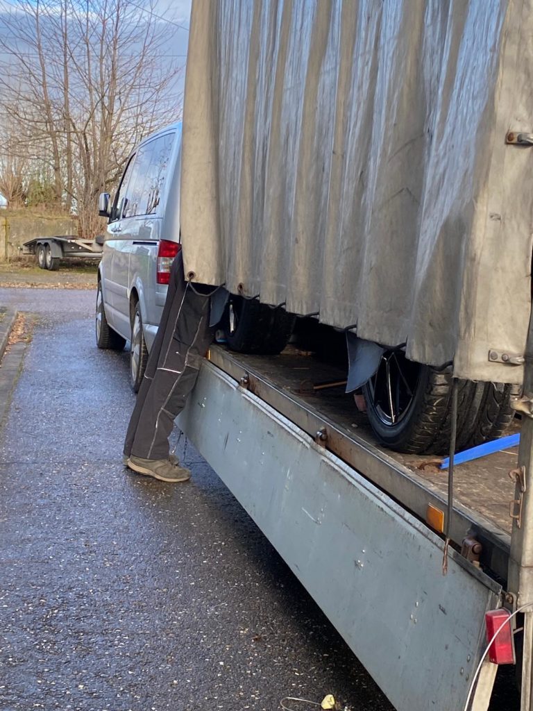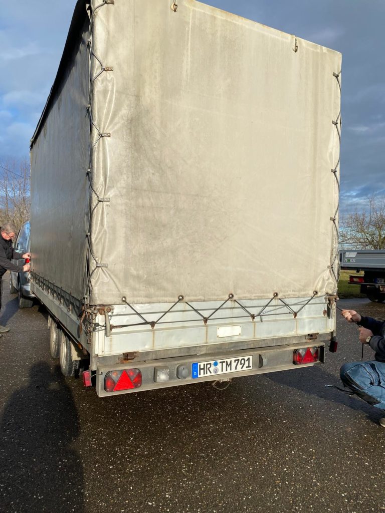 Zum einen ist es mir zu kalt, zum anderen möchte ich den Buggy nicht sofort durch Salz, Regen oder Schnee bewegen. Deshalb habe ich einen Planenanhänger mit Rampen und Gurten organisiert, um den Buggy bei Mirko Busch in Weißenfels abzuholen.