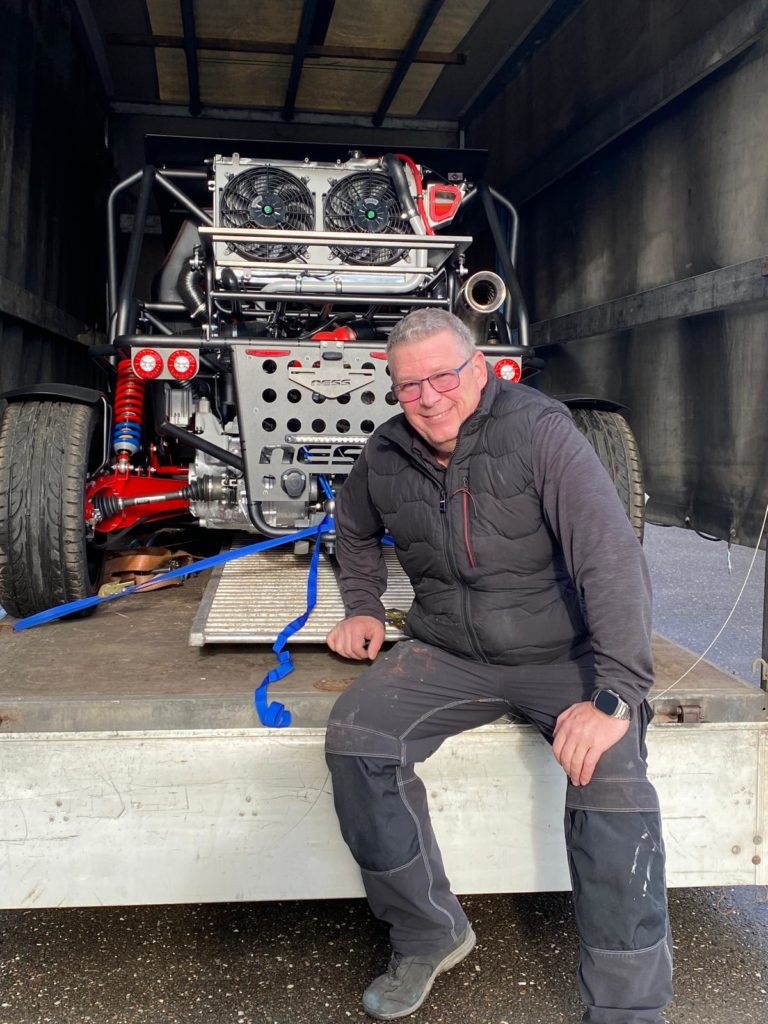 Das abladen verlief super, meine Tochter und zwei Nachbarn packten mit an und alles verlief planmäßig. Nun steht der Buggy in seiner Garage und es wird bis zum Frühjahr hier und da noch etwas geschraubt.