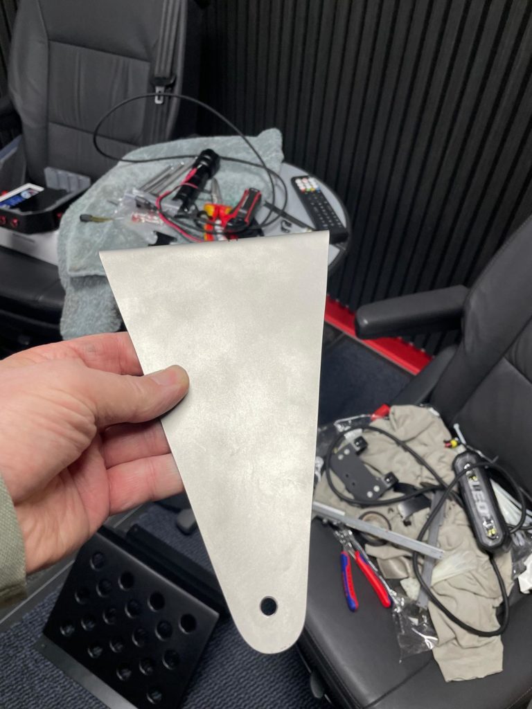 Aus einem Edelstahlblech baute ich einen Halter, welcher genau mitte Rahmen an die Dachhaltelaschen passte. Ein kleines Distanzstück drehte ich 1,7mm ab , welches die Blechdicke war und konnte dann zwei