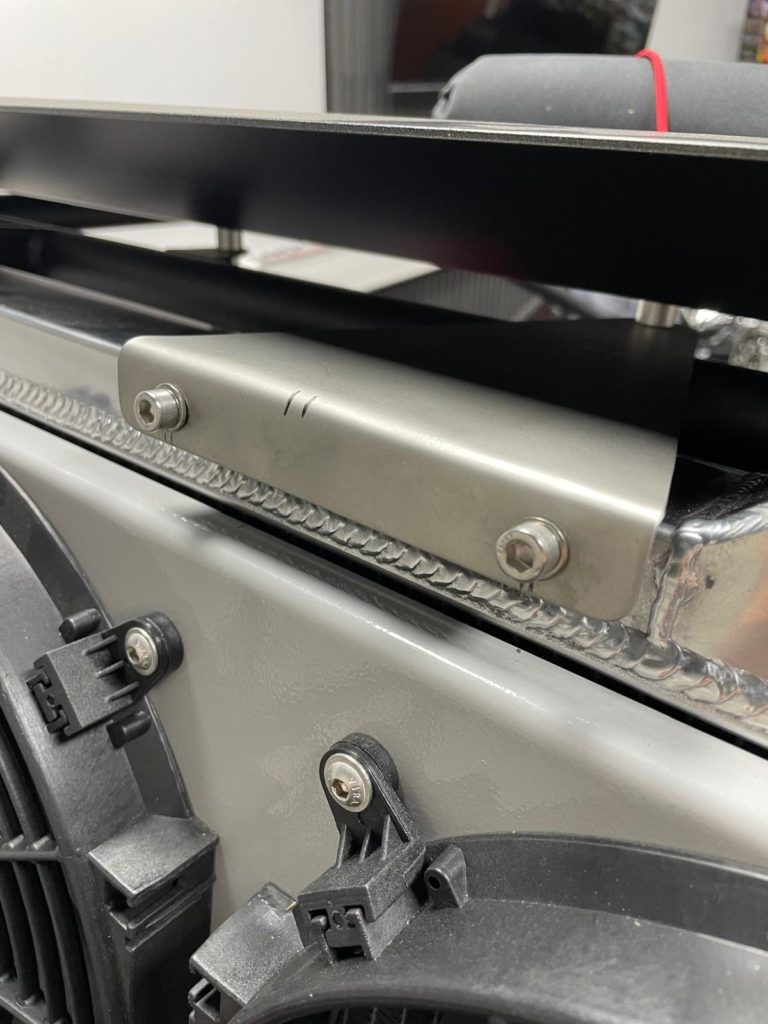 Haltepunkte am Kühler nutzen welche ein M6 Gewinde hatten. Diese waren zwar nicht mittig zum Rahmen, aber ich konnte die Haltepunkte ja anpassen. So sitzt die „Dritte Bremsleuchte“ jetzt perfekt in der Mitte.
