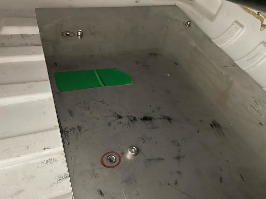 Unter der Box soll später noch eine kleine Box Ihren Platz bekommen für Warndreieck, Warnwesten , erste Hilfe Kasten und ein wenig Werkzeug, Kabelbinder, Klebeband eben Buggymedizin, alles für den Fall der Fälle.