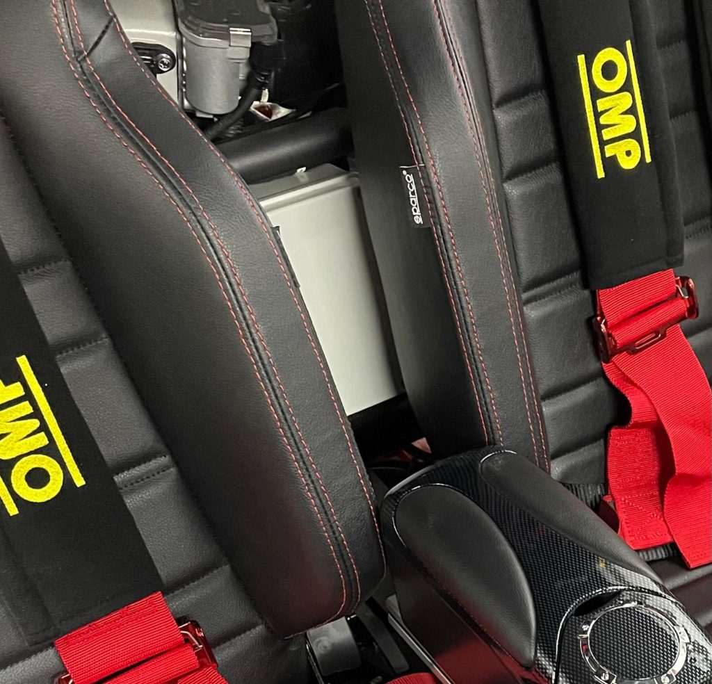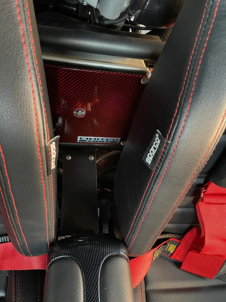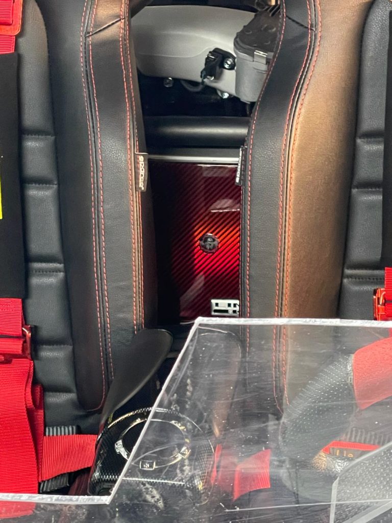 Die Elektrobox hinter den Sitzen ist original grau, sie soll foliert werden