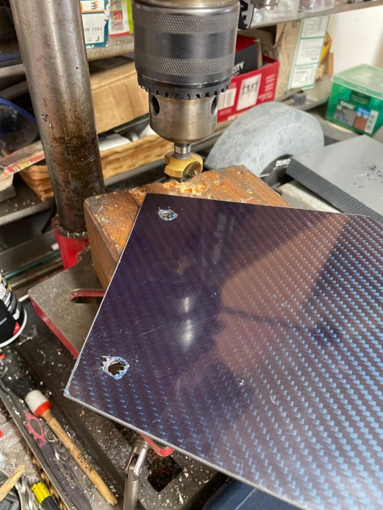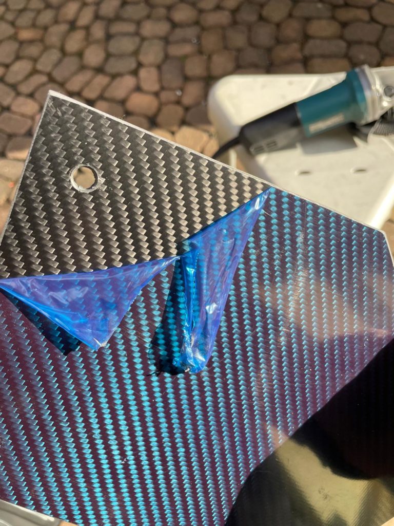 Ich war richtig happy, die Carbonplatte passte super, genau wie meine Schablone, also alles richtig gemacht. Ich stellte nun fest, daß die obere Kante hol lag und ich diesen Holraum ausfüllen musste.