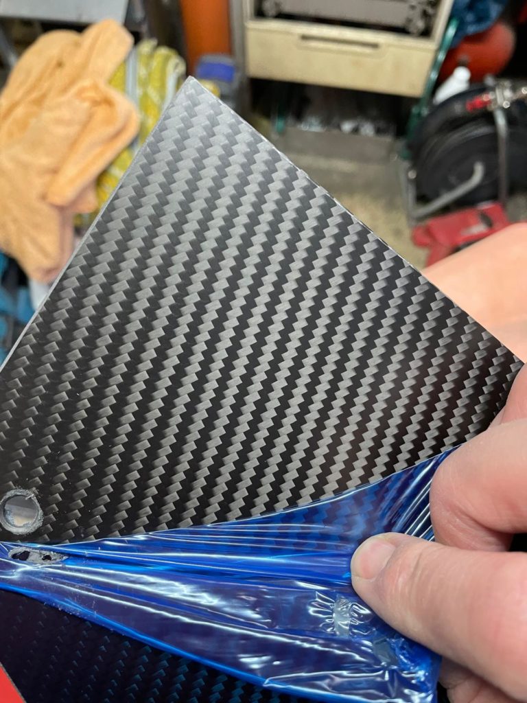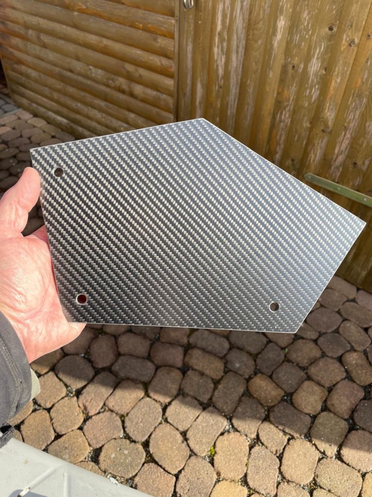 Bautechnisch ging es nicht besser umzusetzen,dass der Fußraum geschlossen ist. Die Idee war ein Abdeckblech als schmaler Streifen, da ich aber noch die schönen 3mm dicken Echtcarbonplatten hatte