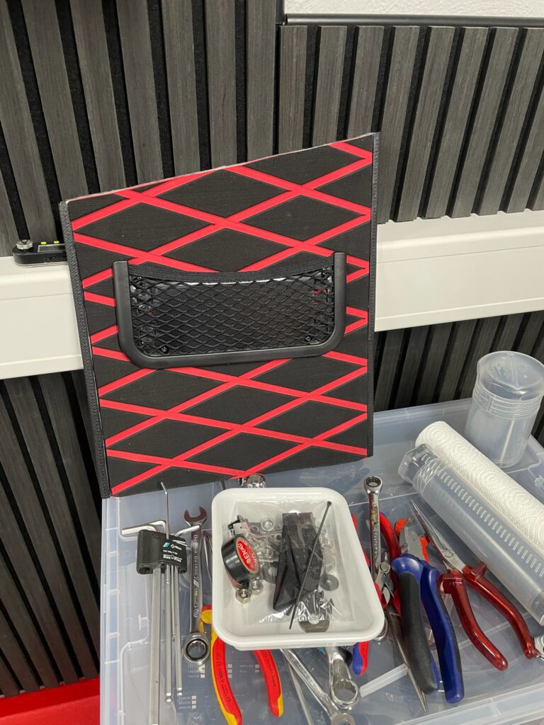 Als erstes habe ich alle Formen grob ausgeschnitten, an den Platten selbst habe ich einen Kantenschutz angebracht um einen schönen Abschluss zu haben. Das montieren der Taschen mit den Schrauben, war aufwendig. hat aber auch funktioniert. Dann ging es an die genaue Verklebung und Einpassung zwischen den Kantenschutz.