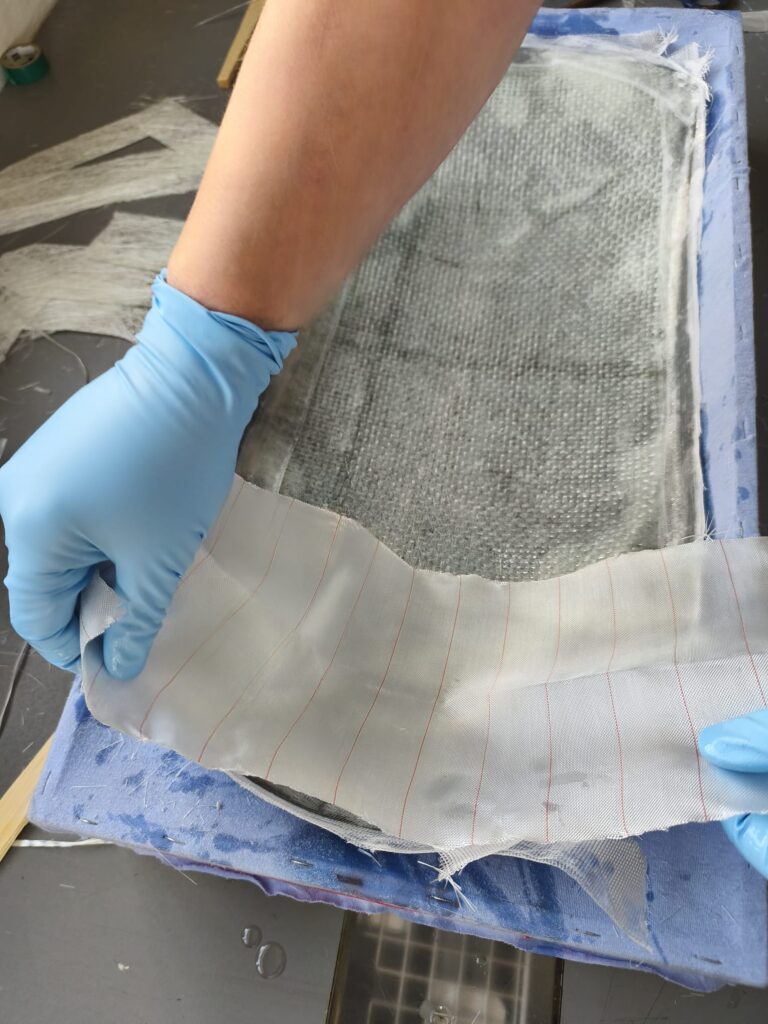 Als letzte Lage wird ein Abreißgewebe aufgelegt, auch Abreißfolie genannt.