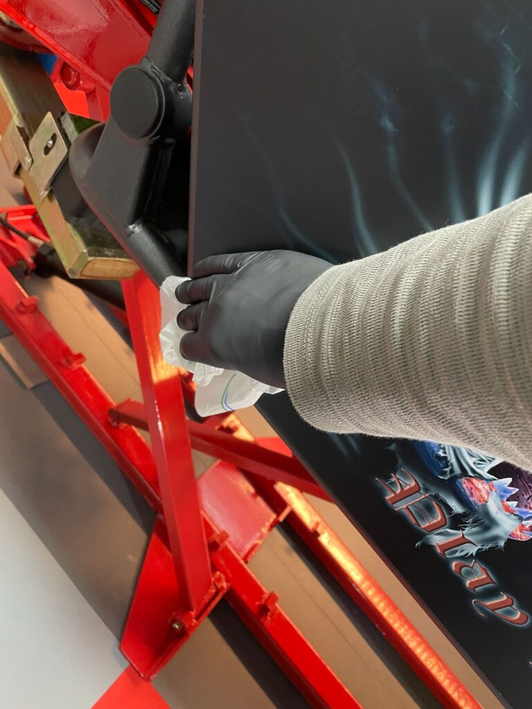 Für die Verklebung habe ich mich wieder für die Nassmethode entschieden. So lässt sich die Position der Folie deutlich leichter korrigieren, bevor sie endgültig fixiert wird.