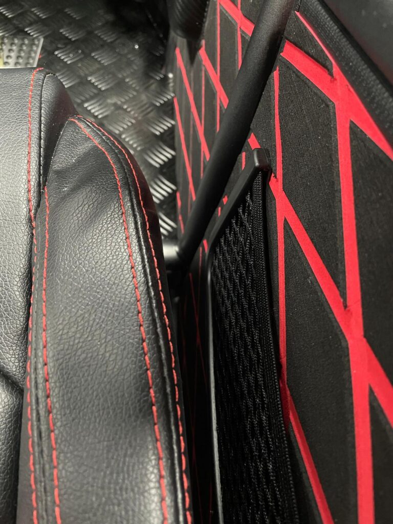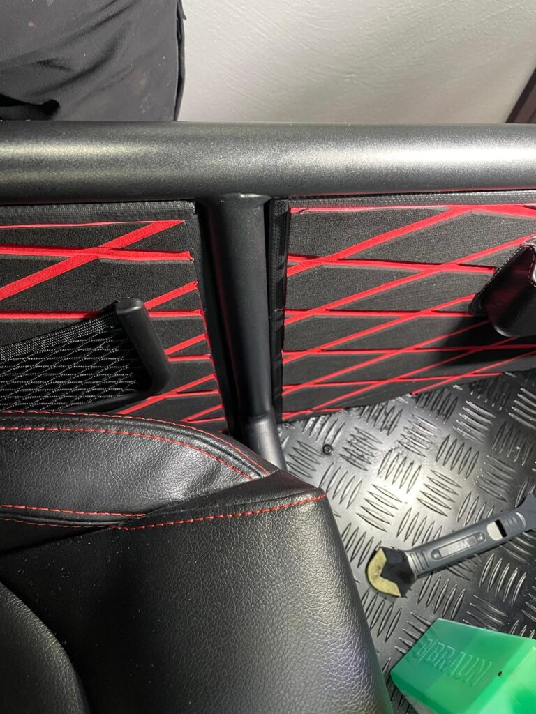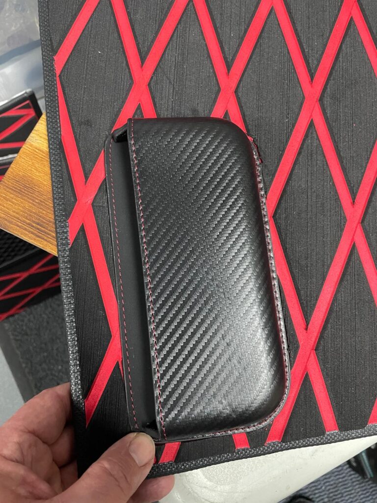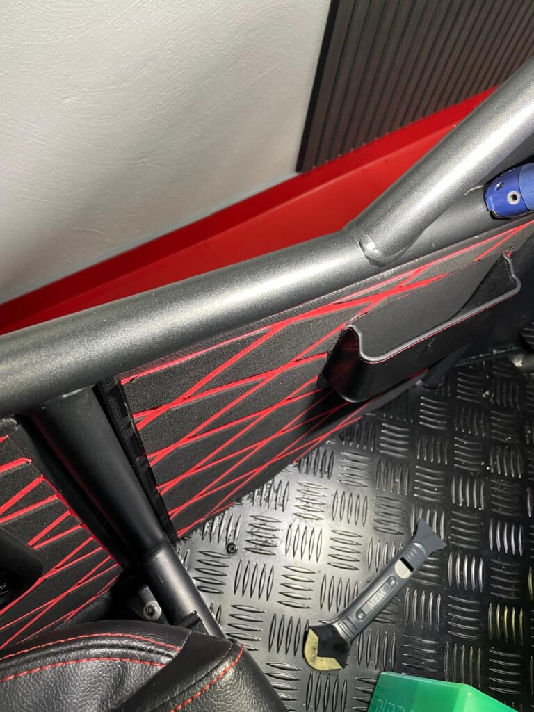 Die kleinen Seitentaschen musste ich einpassen und aus dem Belag der Seitenteile rausschneiden. War nicht so einfach wie gedacht und man muss sehr aufpassen um sich nicht zu verletzten! Denn abrutschen mit dem Messer ge4ht schnell.