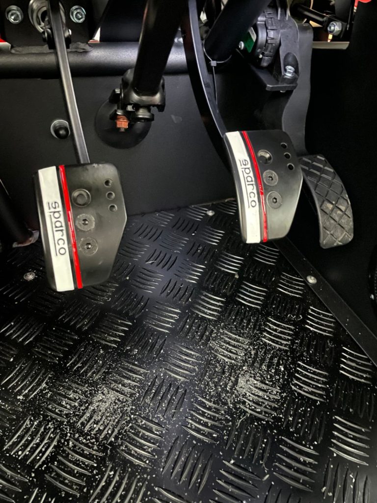 Bremse und Gas Pedal Auflagefläche vergrößern! Die Pedalerie hat original recht kleine Auflageflächen, welche mit Gummi-Überzügen recht klein und klobig sind. Ich habe mir ein paar Pedalabdeckungen von Sparco gekauft. Welche ich nun auf die originalen Platten geschraubt habe. Eine ziehmliche Fummelei sie zu plazieren und zu verbohren, aber das Ergebnis zählt.